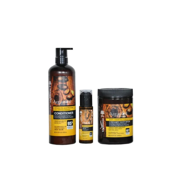 Lightness Argan Oil & Protein Complete Hair Care Set (Conditioner, Creamy Hair Mask, and Argan Oil Serum)