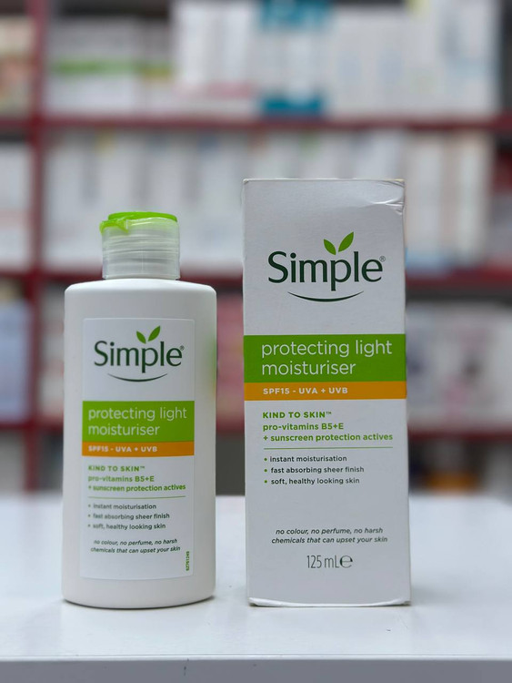 این مدل از آبرسان های لایت سیمپل دارای SPF15 بوده و تنها تفاوت آن با مورد مشابه در همین میباشد. حجم آن 125 میل و تولید انگلیس است و برای همه ی انواع پوست به ویژه پوست چرب و پوست های حساس مناسب است.