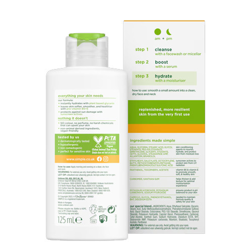 ویژگی های کرم مرطوب کننده و آبرسان سبک SPF15 سیمپل 125میل: